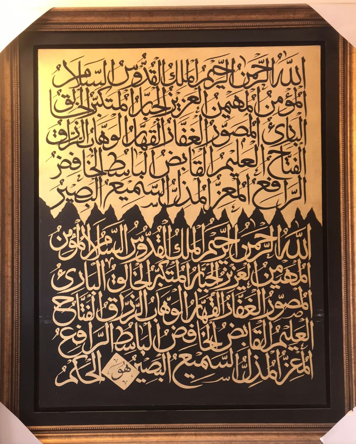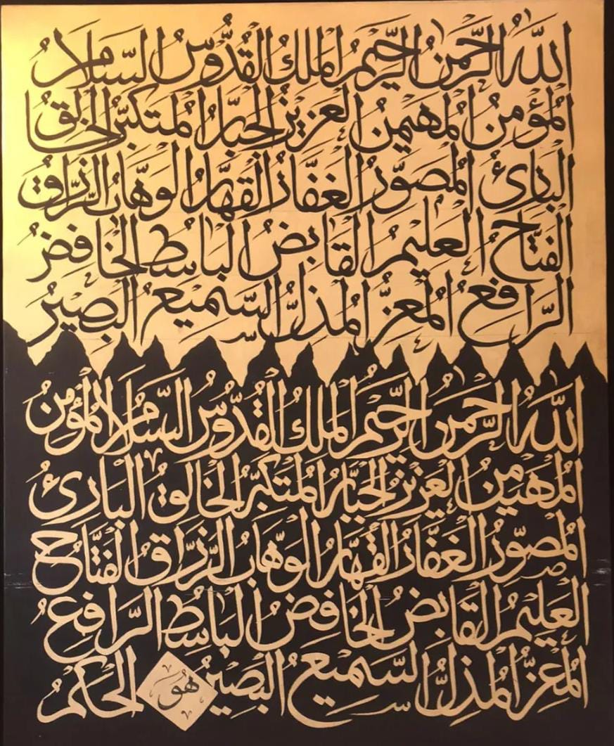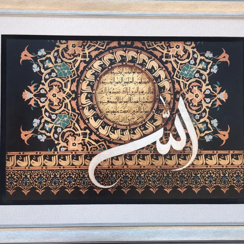 This stunning piece of Islamic calligraphy is perfect for adding a touch of spiritual elegance to any space. Featuring beautiful Arabic script, this artwork is a testament to the skill and devotion of the artist.